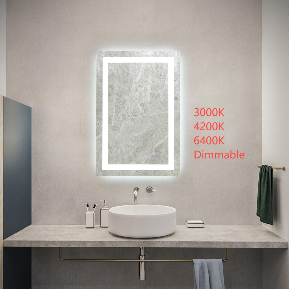 Redefine your daily routine with this ultra-modern LED mirror, designed to offer the perfect blend of style and functionality. Featuring both front and back illumination, this mirror provides a soft yet powerful glow that enhances your space with a luxurious ambiance. The adjustable color temperature (ranging from 3000K to 6400K) allows you to customize the warmth or coolness of your lighting, while the dimmable function lets you create the perfect brightness level. With a 90 CRI rating, this mirror ensures accurate color representation, making it perfect for grooming, makeup application, or daily self-care. The built-in defogger keeps your reflection clear and can be turned on or off at your convenience. Thanks to the touch sensor controls, adjusting your mirror's settings is effortless, and the memory function saves your last preferred settings for a seamless experience. Designed for versatile installation, this mirror can be hung vertically or horizontally using the included French cleats, making it a stunning and adaptable addition to any bathroom or vanity. It can be hardwired or connected to a wall switch for your convenience. Elevate your space with a mirror that not only reflects your image but also enhances your everyday routine with smart, modern lighting.