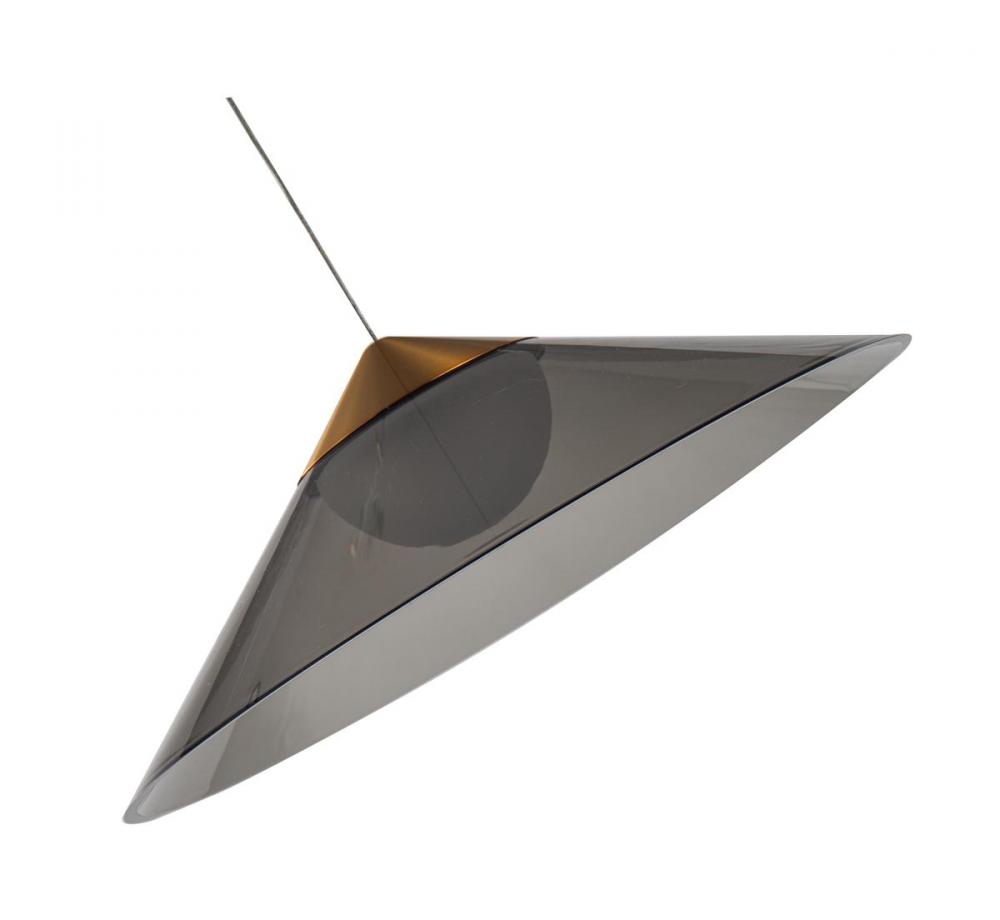 This exquisite LED pendant is in an antique gold finish. The frame is made out of metal, and it comes with a smoke acrylic shade. The LED bulb is integrated into the frame. The adjustable cord link makes this fixture suitable for most ceiling heights.