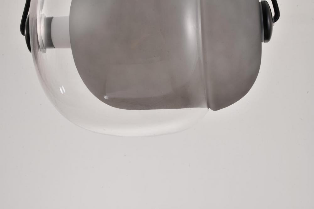 This exquisite LED pendant has a smoke & clear glass frame