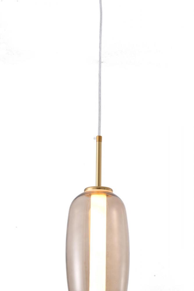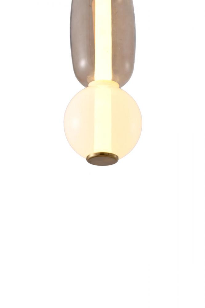 This exquisite LED pendant is in grey and white finish. The frame is made out of metal in gold color, and the LED bulb is integrated into the frame. It also comes with a multi-color glass shade.