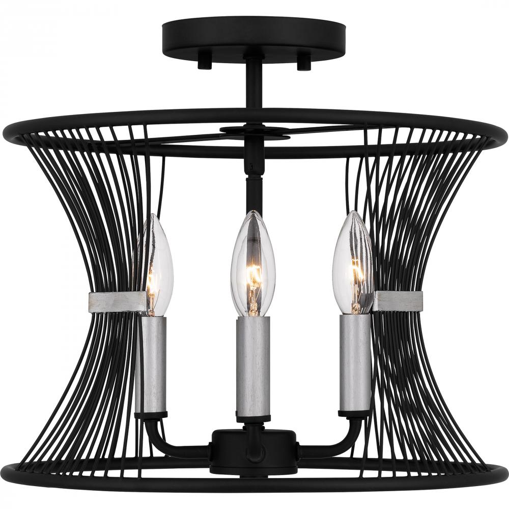 The Leiland collection is a modern piece of functional art. Thin, iron-like lines are banded together with brushed silver accents for a unique and industrial feel. Leiland is available as a semi-flush mount or pendant light, making it a perfect choice in