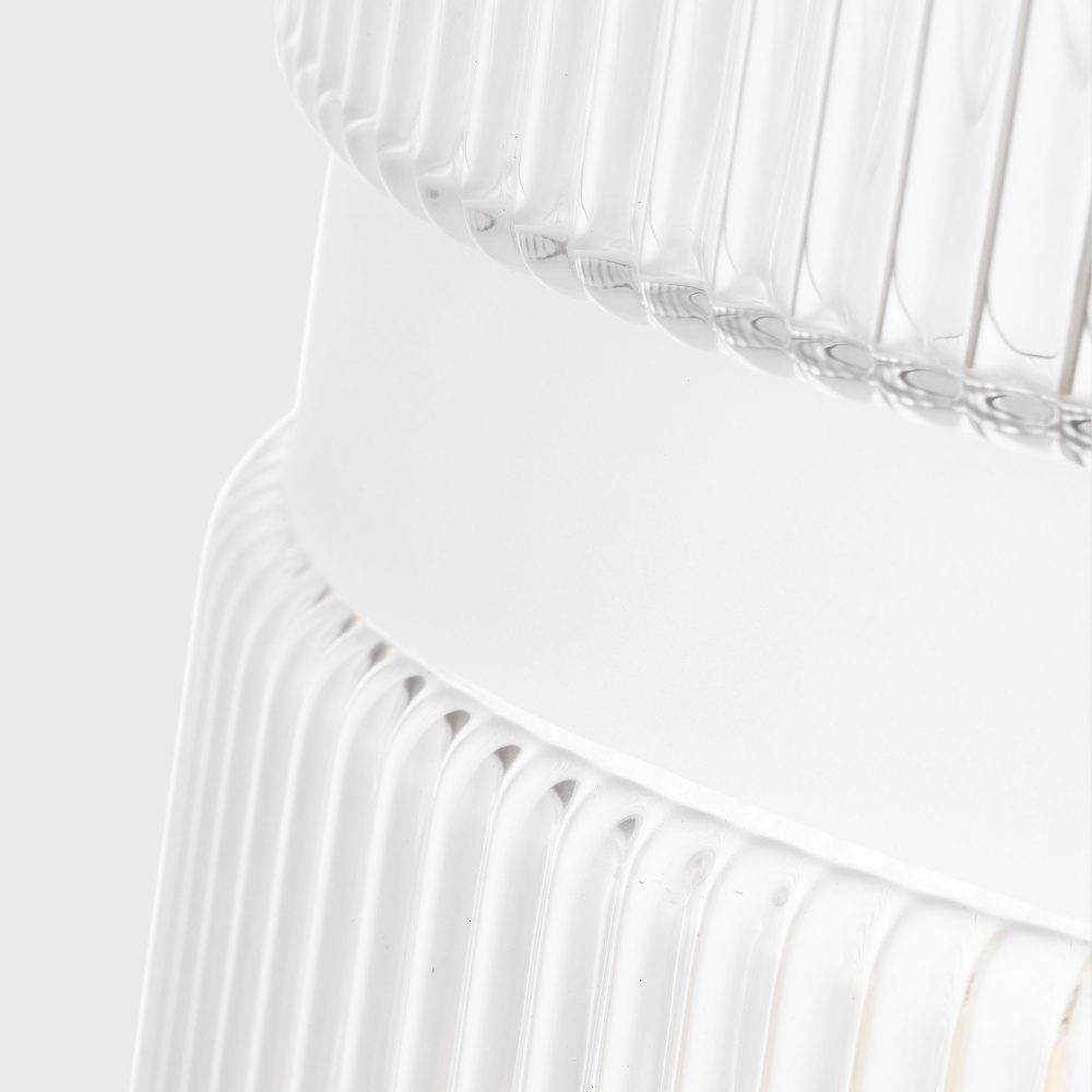 Features a ribbed glass texture complemented by a metal band for added depth and visual interest.