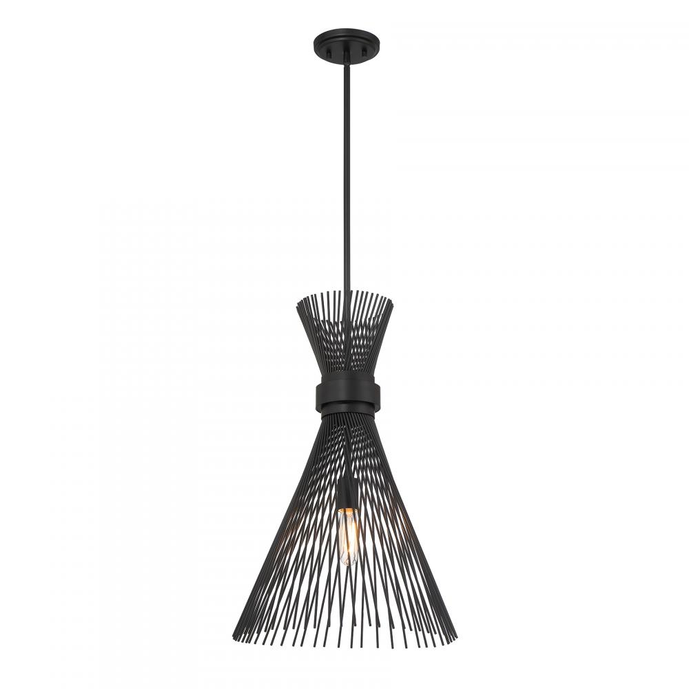 The Savoy House Longfellow 1-light pendant showcases a fashionable style with metal rods that are gathered together at the center and unfurl outward. When the light is on, it creates a dramatic glow that is sure to catch the eye. Matte Black finish. Longfellow is 16" in width and has an adjustable height ranging from 24" to 78". Comes with four 12" downrods and one 6" downrod. Uses one standard size bulb of up to 60 watts. The bulb is not included.