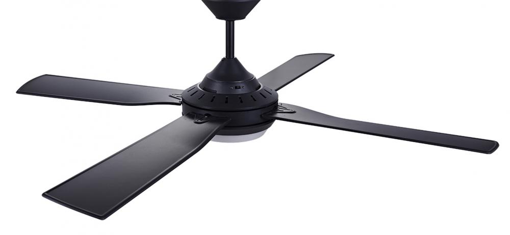The Lucci Air Moonah 52-inch 4 blade fan and LED light in black with black blades. The Lucci Air Moonah comes with high-performance ABS blades, diecast motor, 3-speed remote control with wall holster. The integrated non-dimmable LED light kit will brighten your room or patio with 890 lumens in a 3000k warm white light. The Lucci Air Moonah is covered by our lifetime limited warranty for years of breezy indoor or outdoor comfort. Additional downrods to customize the height of your fan sold separately. Features: Set includes: One (1) ceiling fan with remote control Material: ABS and Steel Finish: Black Ceiling fan dimensions: 12 inches high x 52 inches wide x 52 inches deep Blade dimensions: 22 inches length x 5.5 inches width; Blade color: Black Summer/Winter mode: Yes D7x0.6 motor Airflow(CFM): 5207.85 Number of speed: 3 Power Consumption Average(wattage): 75 Motor Wattage: 75W Include 18W LED, 1300LM, 3000k Non Dimmable RPM H/M/L (motor speed): 215 Fan Watts when used at high speed: 65W Voltage: 120Vac, 60Hz This product will ship to you in one (1) box. Accessories pictured are NOT included. Assembly required.