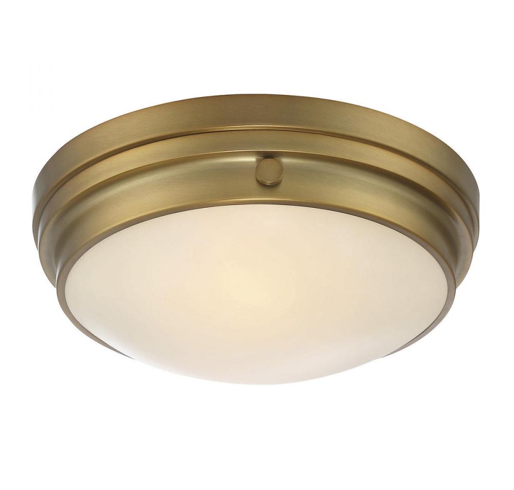 The Savoy House Lucerne 2-light ceiling flush mount is sure to bring sleek metallic style to any space! A white glass shade makes Lucerne an ideal choice for comfortable, useful light. Finished in rich warm brass. Flush mounts can be used on the ceiling of pretty much any interior room, including foyers, hallways, stairways, closets, bathrooms, bedrooms, kitchens and more! Bulbs not included. The warm brass finish can be paired with brass hardware or mixed with hardware in other finishes. Pep up the light and style of any room with Lucerne. When you choose a Savoy House lighting fixture, you can be certain you've selected a piece that will withstand the test of time.