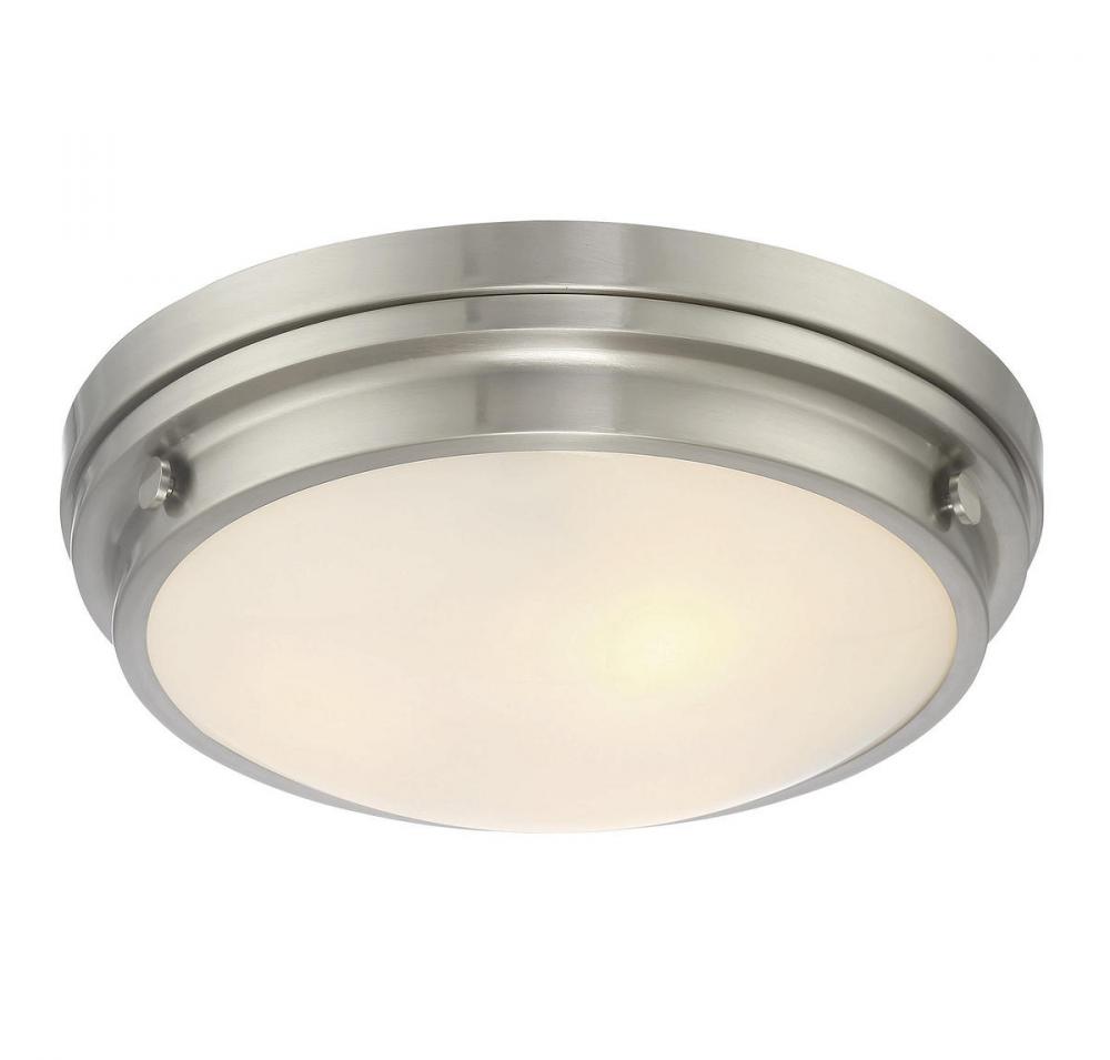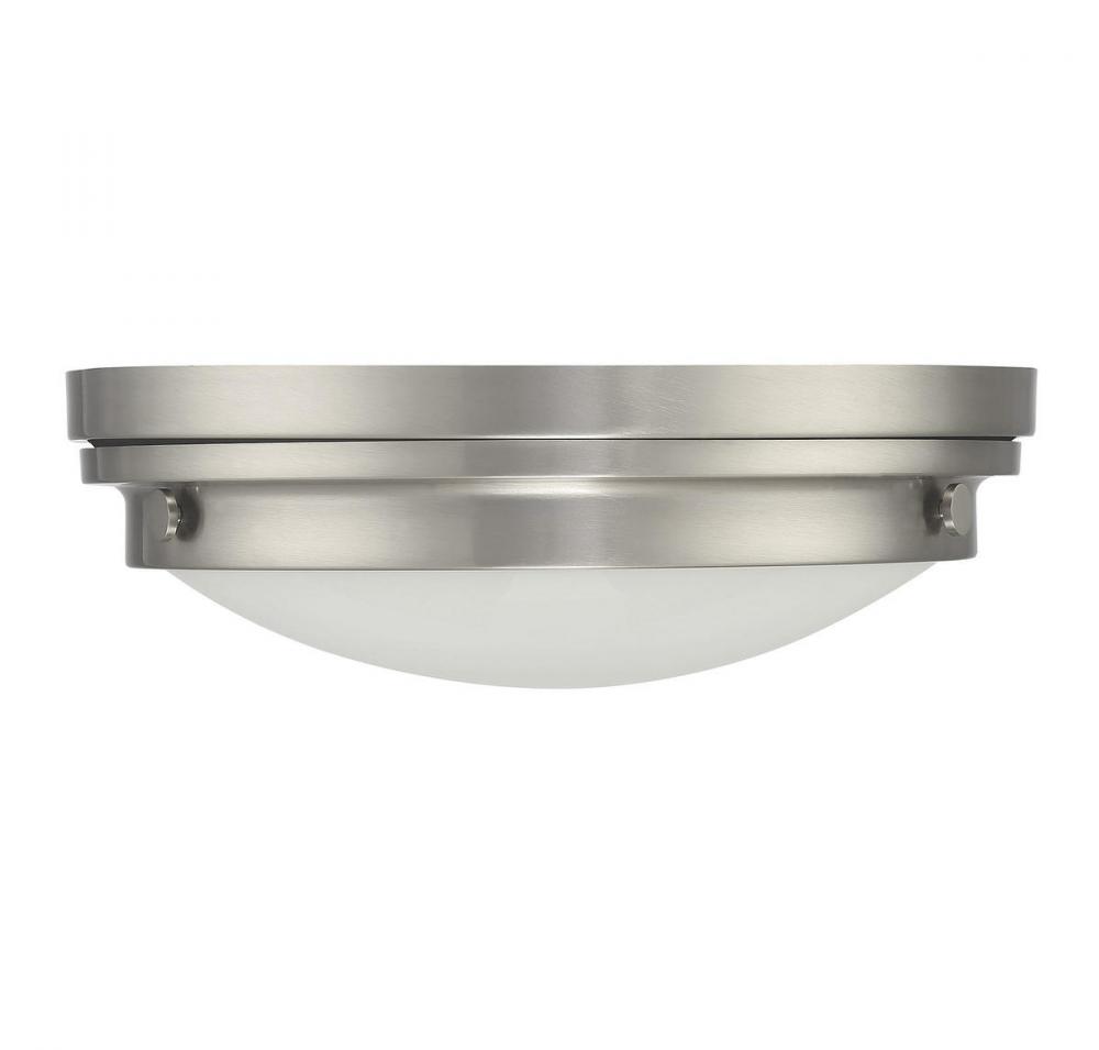 The Savoy House Lucerne 3-light ceiling flush mount is sure to bring sleek metallic style to any space! A white glass shade makes Lucerne an ideal choice for comfortable, useful light. Finished in sleek satin nickel. Flush mounts can be used on the ceiling of pretty much any interior room, including foyers, hallways, stairways, closets, bathrooms, bedrooms, kitchens and more! Bulbs not included. The satin nickel finish can be paired with nickel hardware or mixed with hardware in other finishes. Pep up the light and style of any room with Lucerne. When you choose a Savoy House lighting fixture, you can be certain you've selected a piece that will withstand the test of time.