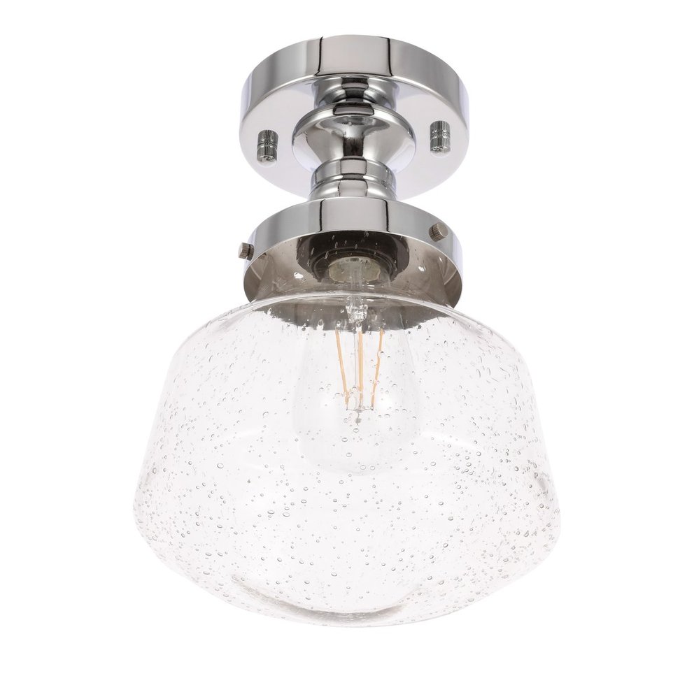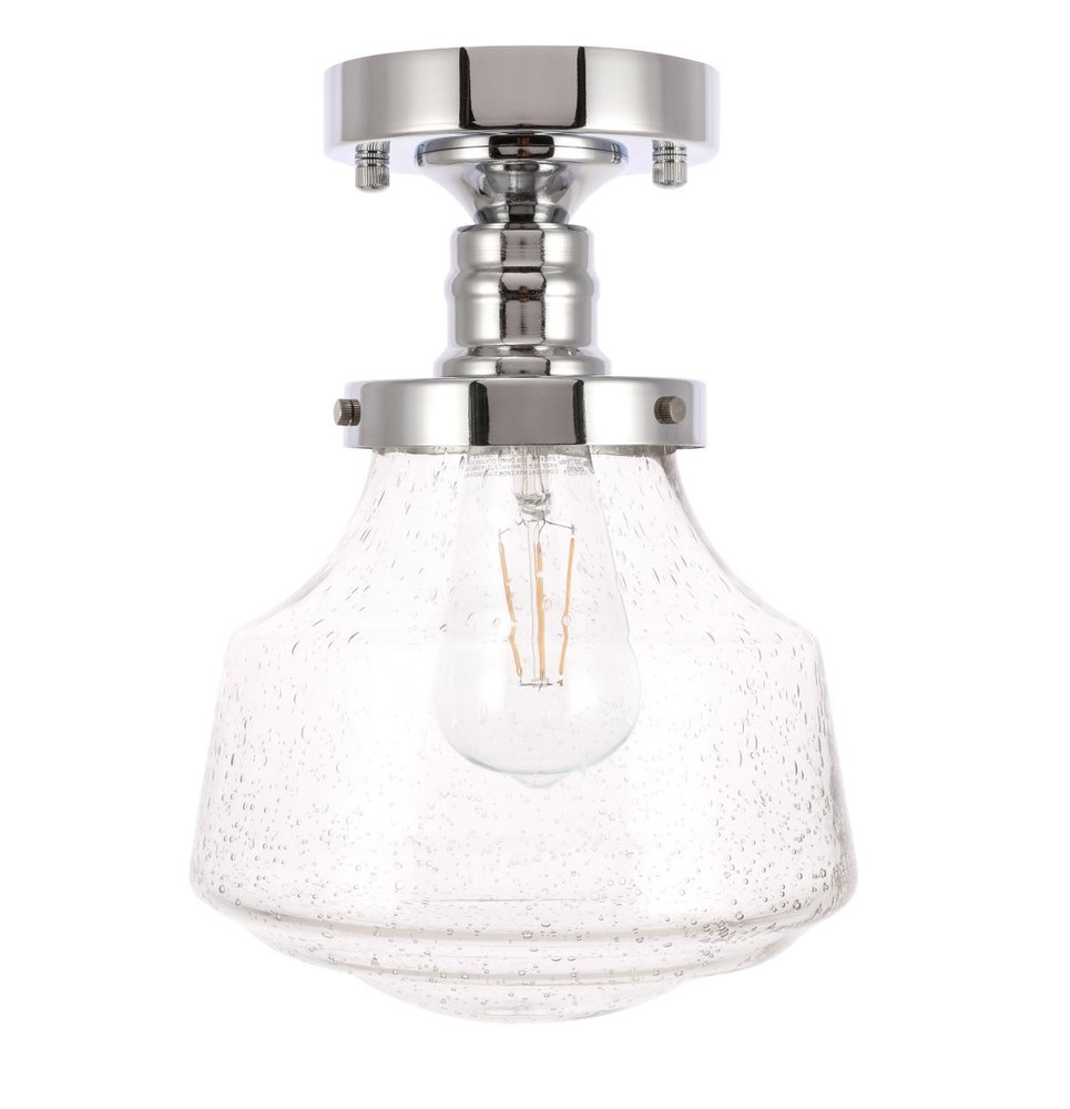 The Lyle Collection is a stunningly functional, yet simplistically lovely light. The geometric shade creates a clean form that will fit well in any space, large or small. Its versatile simplicity allows for this fixture to blend in well with the rest of your room, while still maintaining its own bright personality. Available in a black, chrome, or brass finish, and a clear bubble or frosted white shade, let this ceiling lamp illuminate your room (light bulbs not included).
