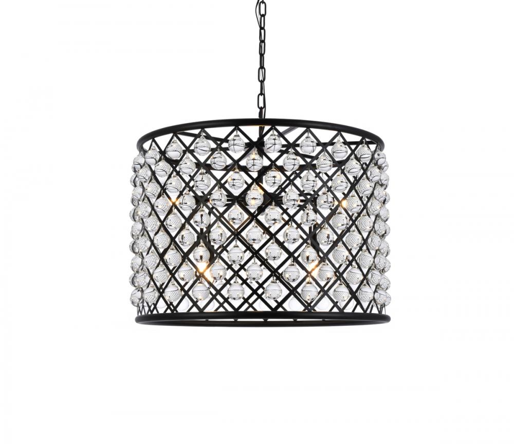 Modern simplicity meets organic beauty in the breathtakingly unique Madison collection. Hand-polished, multifaceted clear crystal spheres shimmer like dewdrops in a circular forged-iron grid with a golden-iron, Matte Black, or polished-nickel finish. These airy pendant lamps will brighten up a kitchen, dining room, foyer, or stairwell in an explosion of reflected light.