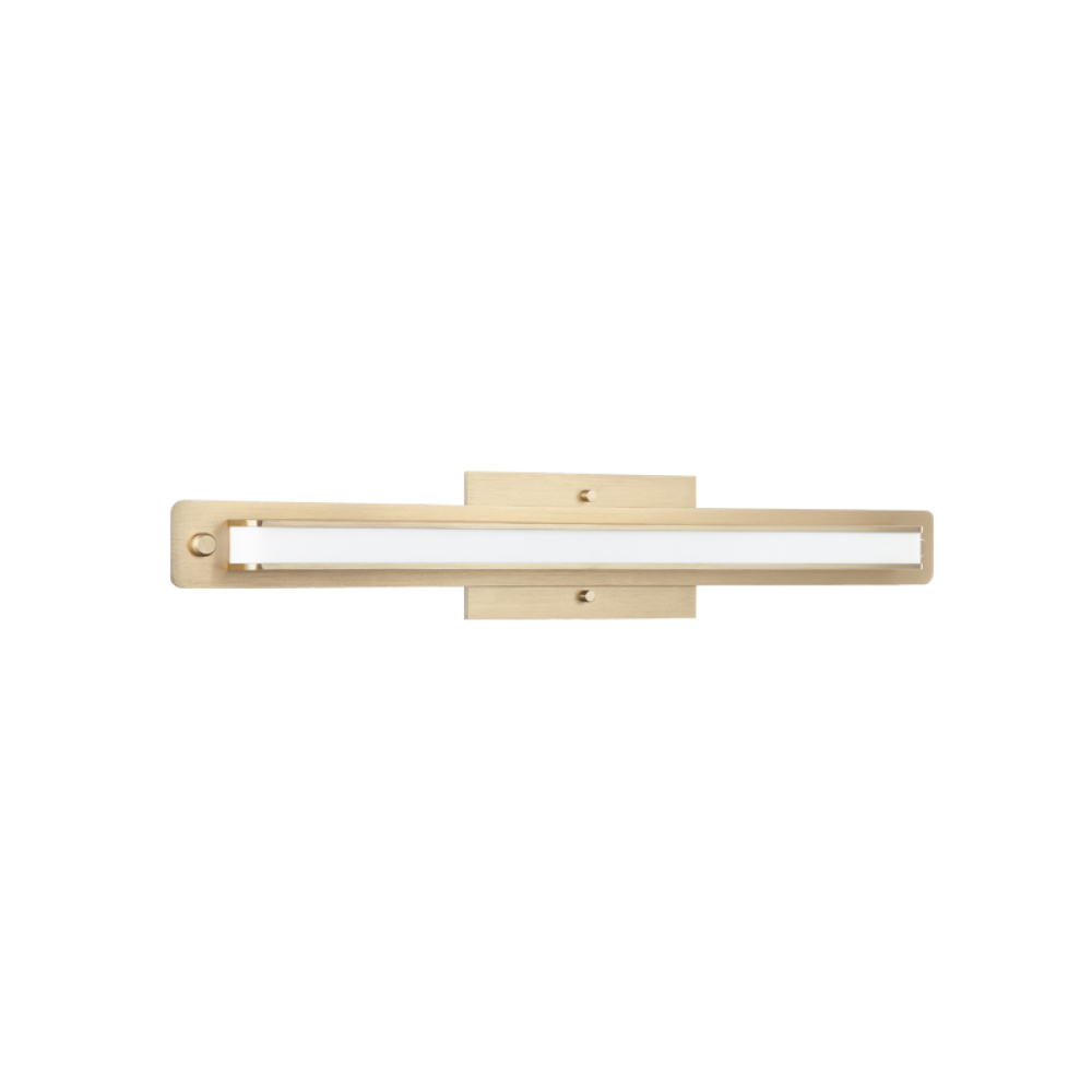 Magdele is a strikingly serene LED vanity series. The soft coloured metal frames the LED centre, bringing tranquility to any room. Available in 2 sizes and 2 finishes: Aluminum and Oxidized Gold.