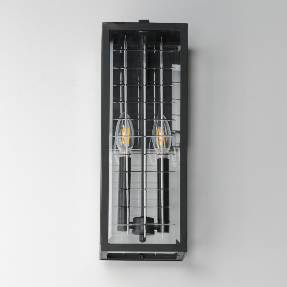 A simple square-framed lantern features deep etched squares on Clear glass, creating a captivating array of refracted light. Constructed from die-cast aluminum and finished in Matte Black, the design blends classic elements with a refreshing, modern approa