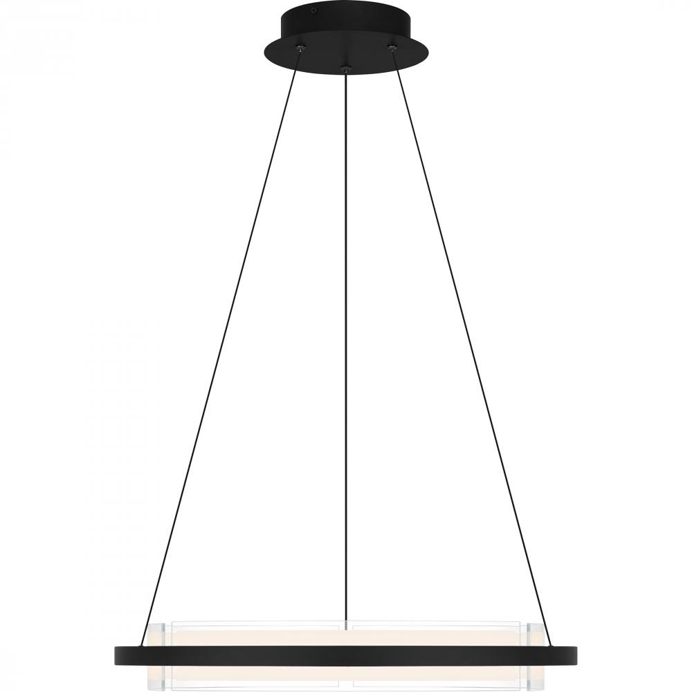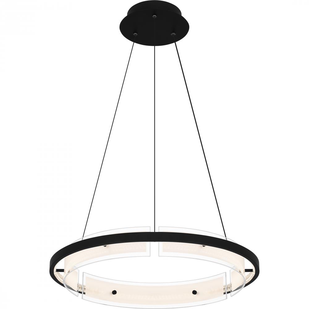 Simple construction and minimal styling elevate the frosted glass detail of Malik. A clean and contemporary ring defines the pendant, featuring a matte black finish for a sharp contrast. An integrated LED light source shines through the clear shade, sparkl