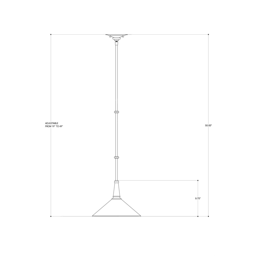 The Manuscript Pendant is a contradiction in tones. The Mole black finish on the exterior of the shade contrasts the slices of antiqued mirror fitted piece by piece inside shade to create an elegant reflector. Adjustable from 19" to 49" with use of included chain/rod kit/cable. If your space calls for a longer drop, additional chain/rods/cable is available for purchase.