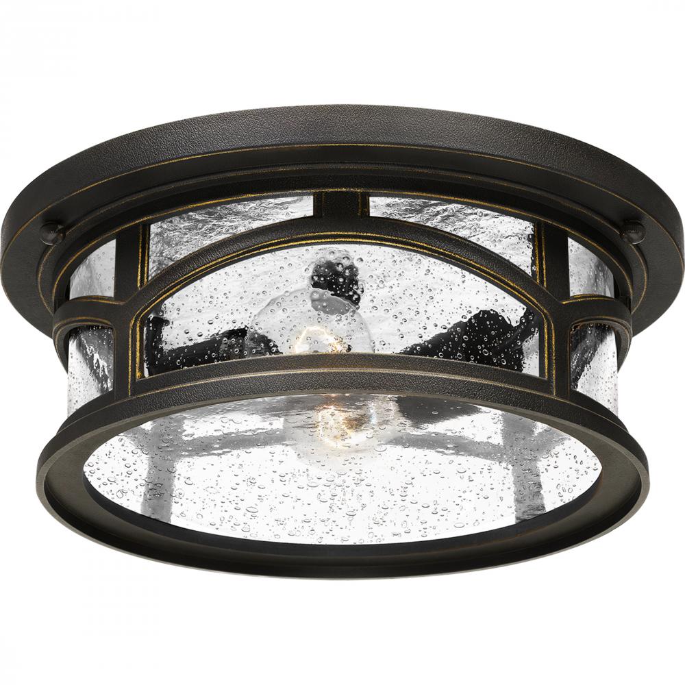 Marblehead is a rich masculine outdoor series and a welcome addition to the Quoizel Coastal Armour Collection. The stately form of the metal arches gives the clear seedy glass a window like appearance. Made from a new weather resistant outdoor composite
