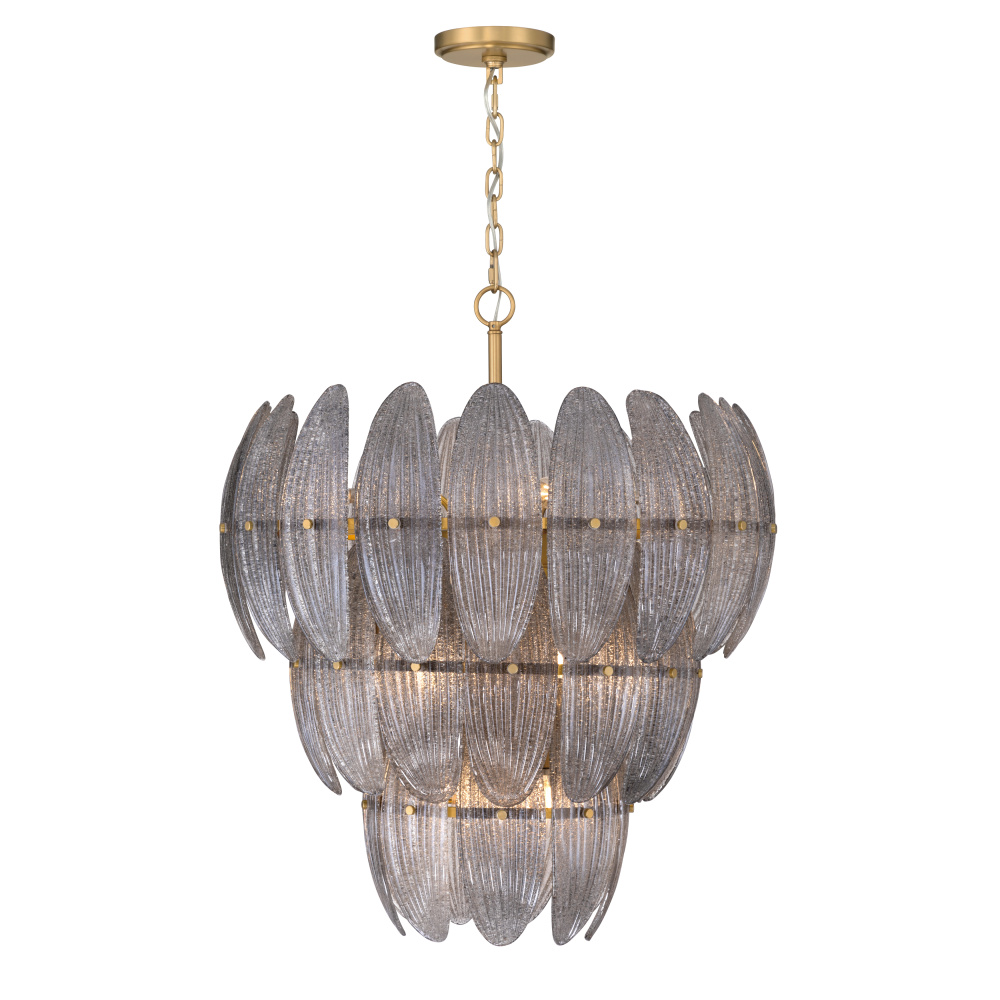 11-Light Pendant - Legacy Brass with Grey Textured Handmade Glass