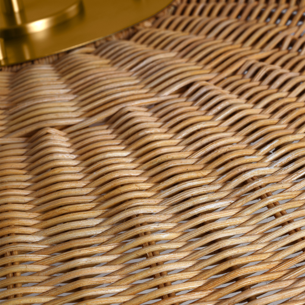 Mari is inspired by rattan handbags from kate spade new york as well as classic 50s and 60s modernist profiles. Hand-woven rattan gives this series an organic, tropical vibe and ensures a warm glow. The golden canopy adds a dash of glamour. Filtering the light from within, each piece creates a play of light and shadow in a room, adding an inviting ambiance. Mari can work with various boho decor and in homes with coastal or farmhouse styling.