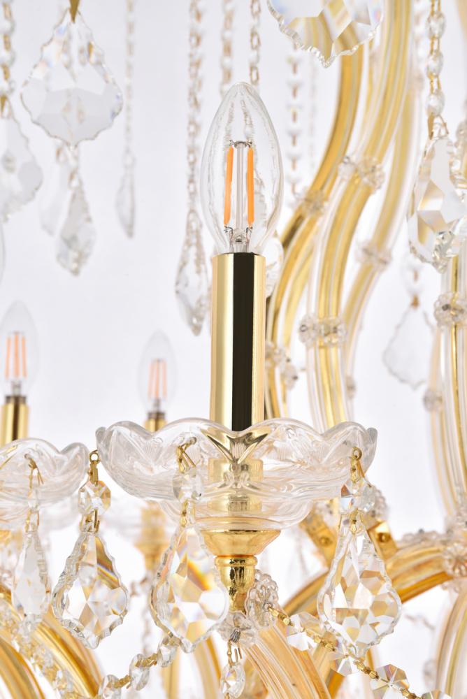 A heavenly high point to your home, Maria Theresa collection pendant lamps are ablaze with hundreds of resplendent crystals. Copious strands of sparkling clear or golden-teak crystals dangle from elaborate tiers of glass-coated steel arms in your choice of a chrome, gold, golden-teak, white, or black finish. An imperial favorite for the stairwell, dining room, or living room.