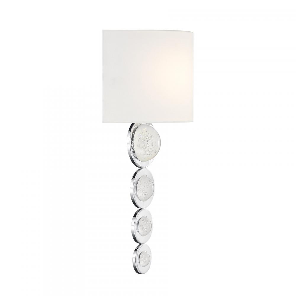 Say bonjour to the Marseille 1-light sconce from Savoy House, a wall sconce that is simply magnifique! Its curving white fabric shade pairs up nicely with the Chrome finish. The arm is decorated with four circles featuring bubbly details for an extra touch of textural intrigue. When illuminated by the integrated LED light, these details will shine beautifully. Marseille is 17.5" in height, 9" in width and extends 4" from the wall. This sconce is damp area rated.