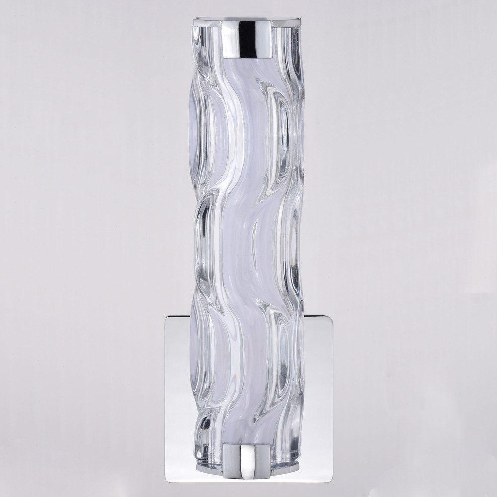 The sculpted glass of the Marseille collection adds visual interest and movement to an otherwise classic shape. The chrome and natural brass finish options blend well with contemporary decors. An integrated LED light source provides energy saving, no bulb changing convenience, low maintenance and long-lasting performance. This wall sconce is ideal for bathrooms, hallways, stairways, and foyers. This bathroom light is perfect over small vanities or as a pair over double sinks.