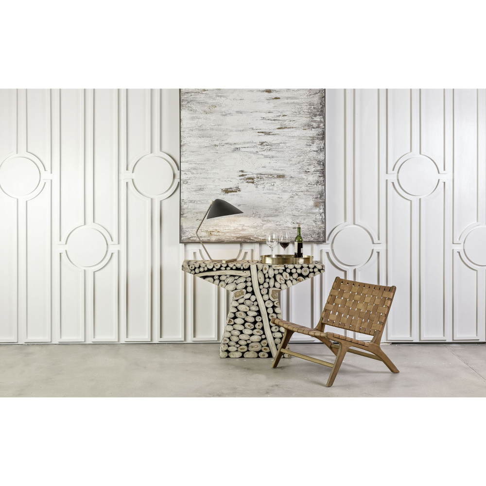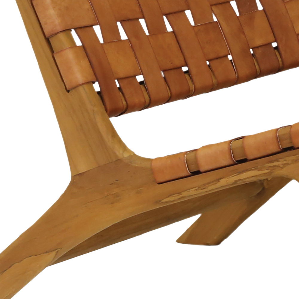 The Marty chair is an effortlessly stylish accent seat for a living room or relaxed social area. The frame is handcrafted from teak, while woven, dark leather strips form the strong and comfortable back and seat. With Mid-Century and Scandinavian style notes, this piece has a classic, versatile appeal.