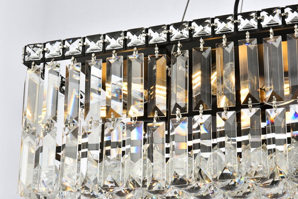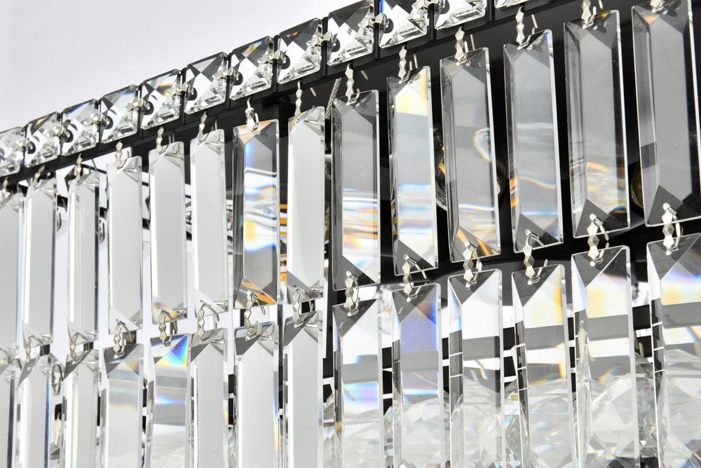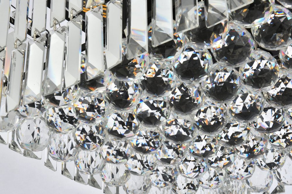 A riot of shapes and textures, Maxime collection flush mounts sparkle in a mosaic of crystal tiles. Square and rectangular precision-cut crystals form the flamboyant exterior while faceted crystal balls create a bubbled effect for light to shine through beneath. Available in a black or chrome finish with clear crystals, these lamps are a luxurious addition to a kitchen, stairwell, foyer, or living room.