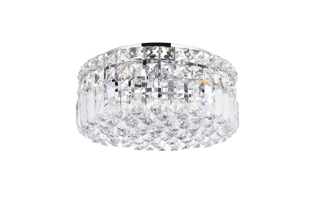 A riot of shapes and textures, Maxime collection flush mounts sparkle in a mosaic of crystal tiles. Square and rectangular precision-cut crystals form the flamboyant exterior while faceted crystal balls create a bubbled effect for light to shine through beneath. Available in a chrome finish with clear crystals, these lamps are a luxurious addition to a kitchen, stairwell, foyer, or living room.