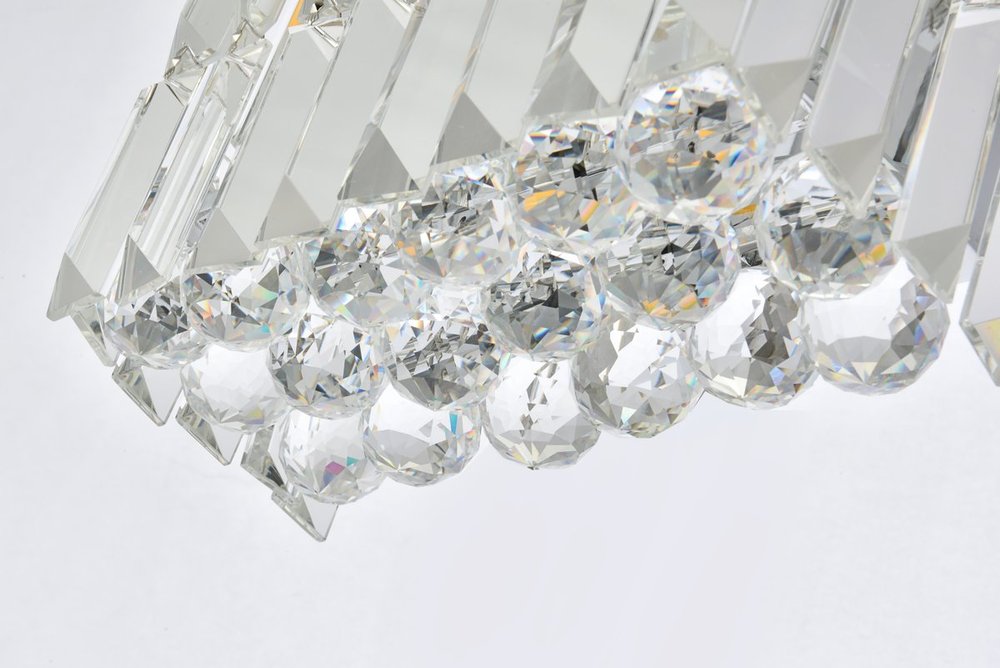 A riot of shapes and textures, Maxime collection wall sconces sparkle in a mosaic of crystal tiles. Square and rectangular precision-cut crystals form the flamboyant semicylindrical or rectangular exterior while faceted crystal balls create a bubbled effect for light to shine through beneath. Available in a chrome finish with clear or golden-teak crystals, these lamps are a luxurious addition to a bathroom, entryway, or kitchen.