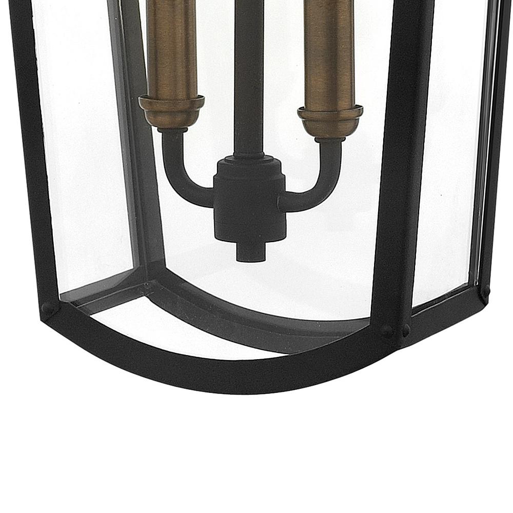 Burton’s classic cast aluminum construction in a robust Black finish is complemented by elegant touches. The distressed copper accents on the backplate, roof and socket cover paired with clear beveled glass complements the traditional styling.
