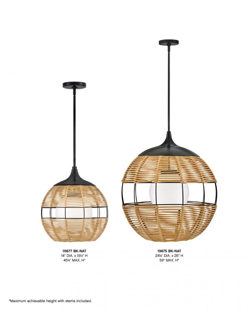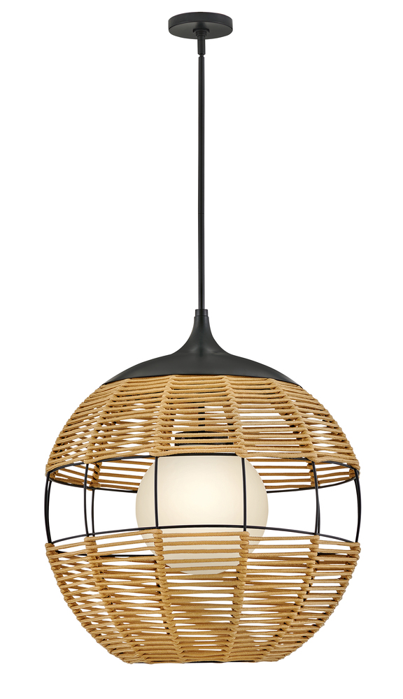 Maddox boasts an edgy, bohemian aesthetic with an open-weave design and geometric shape. This orb pendant features weather-resistant nylon rope in Black or Natural with an etched opal globe nestled inside. Maddox casts the perfect outdoor ambient light to accentuate modern outdoor living spaces.
