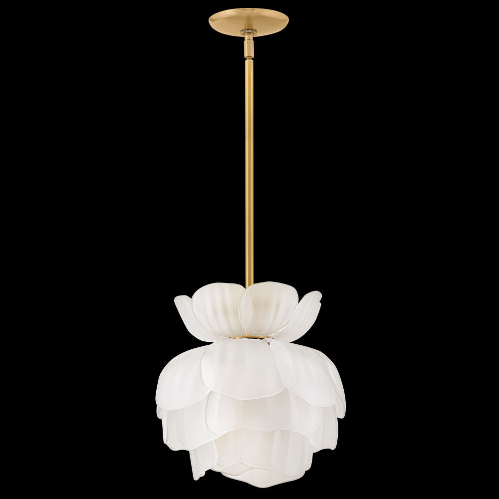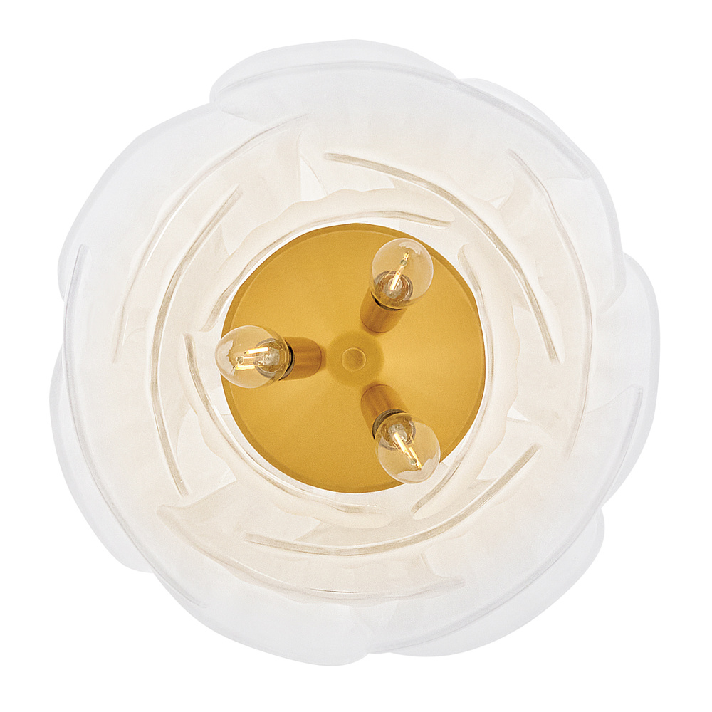 Fantine’s flowing blooms are inspired by preserved flowers suspended in time. Uniquely shaped artisan-sculpted glass arranged in lush layers creates an ethereal dance of light and shadow. An exaggerated canopy and slender stems are crafted from solid brass in a hand-touched Unlacquered Brass finish.