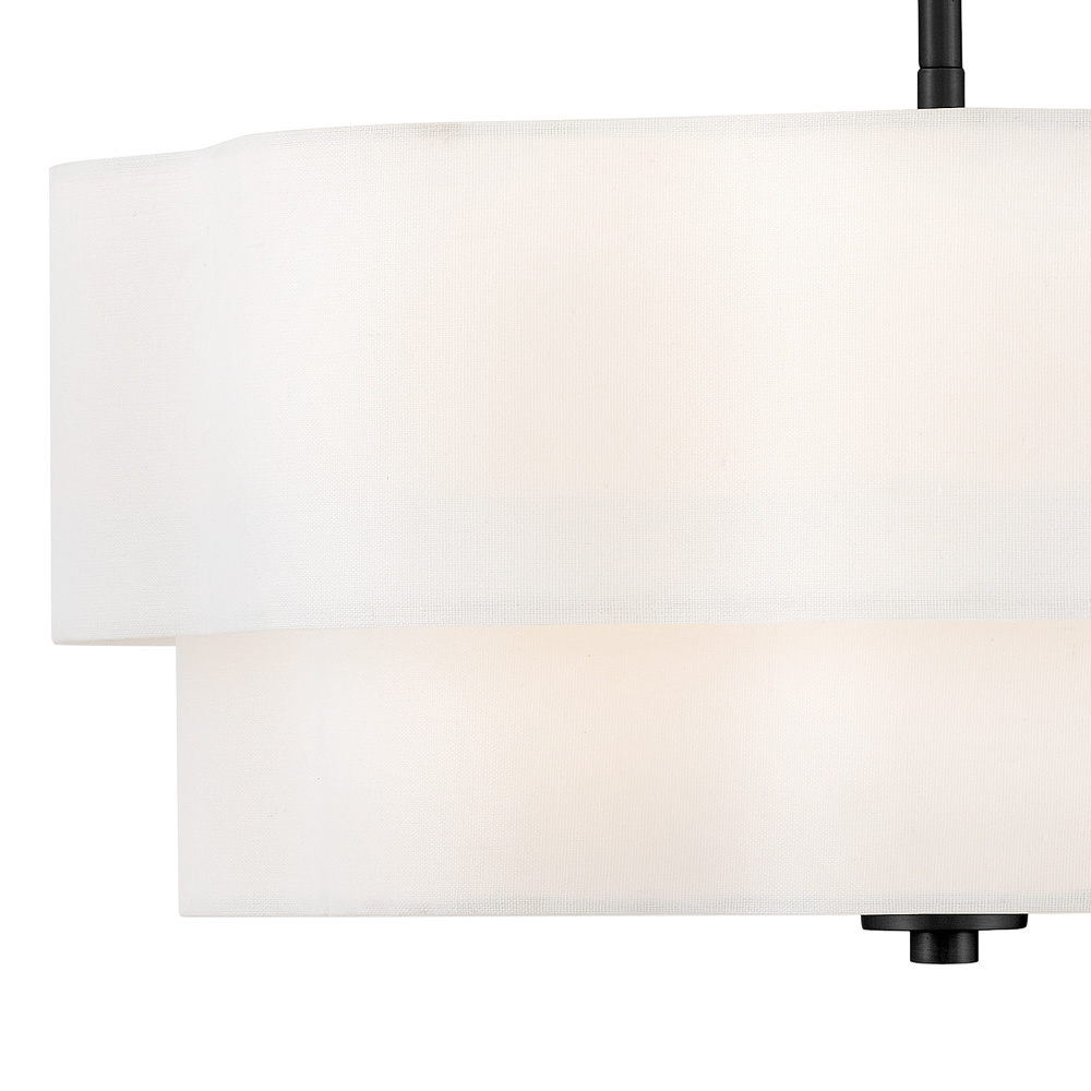 Splendidly soft, Gwen’s shapely scalloped shade complements inviting light with layers of Off-White Linen suspended from delicate chains and minimal metal stems. A Black or Lacquered Brass finish provides a versatile complement to any interior style.
