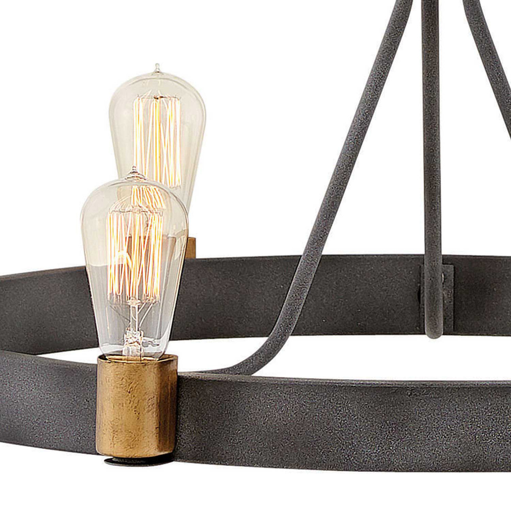 With striking simplicity, Silas is a throwback to an era where basic, hardworking design was expected. A single, wide Aged Zinc finish ring does the heavy lifting, but Heritage Brass finish fitters and accents are the perfect complement. The result is an uncluttered, industrial centerpiece to any space.
