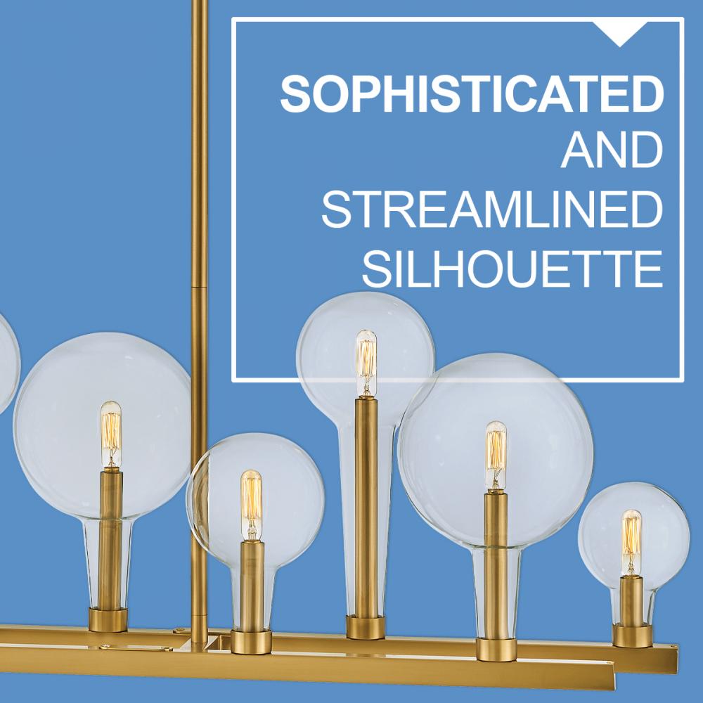 Inspired by the vintage flasks of a chemistry classroom, Alchemy is a unique statement piece. Its tapered globes instantly stand out in a variety of spaces, while the open silhouette enhances its sophisticated edge.