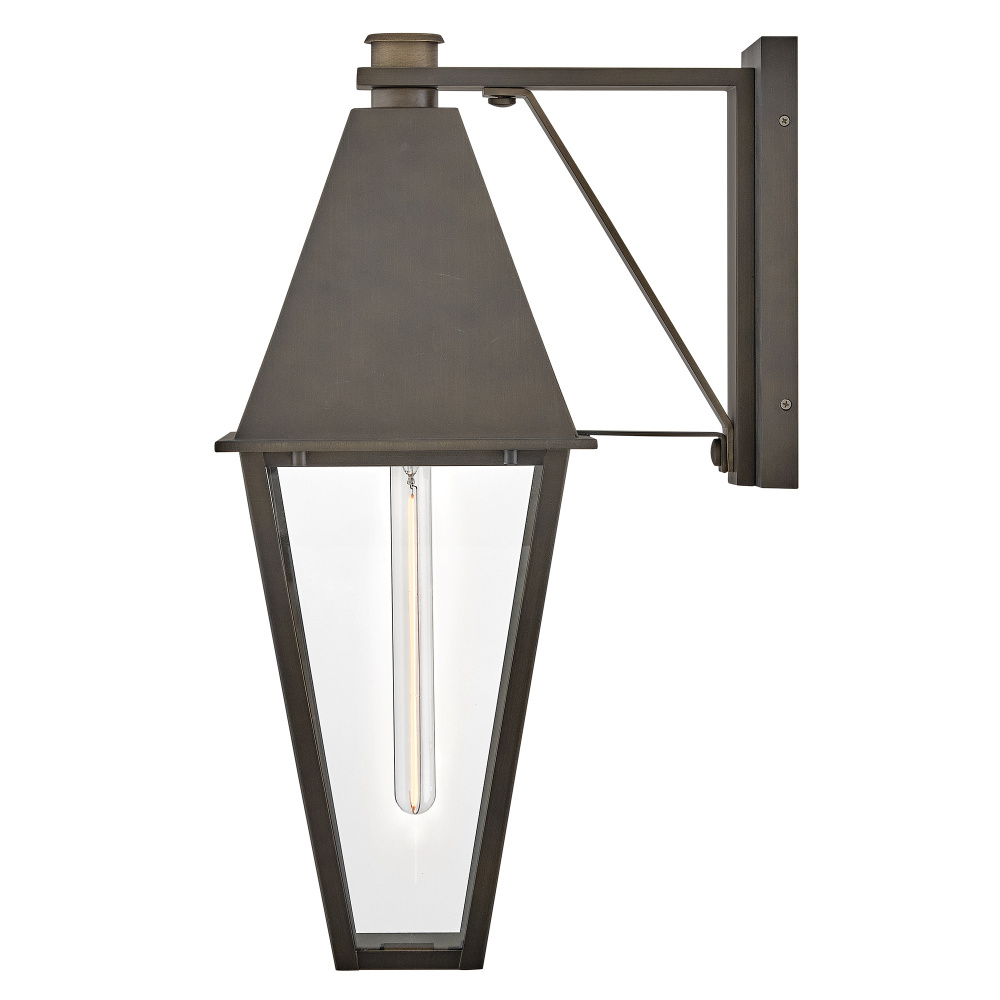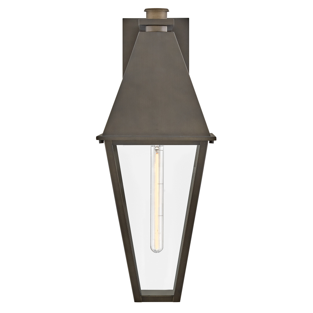Endsley’s stately, modern gas lantern design features an oversized roof with a simple chimney, complemented by tall, clear glass and a painted, artisanal Blackened Brass finish. Each dignified fixture embraces traditional architectural details yet feels right at home in contemporary outdoor spaces.