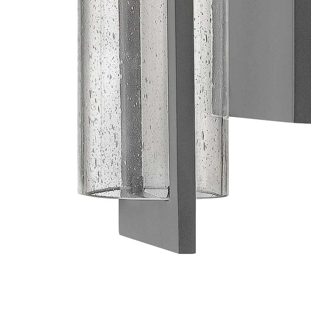 Shelter’s minimalist style in aluminum creates a chic, dramatic statement as the light from above grazes through its clear seedy glass. Shelter comes standard Dark Sky compliant.
