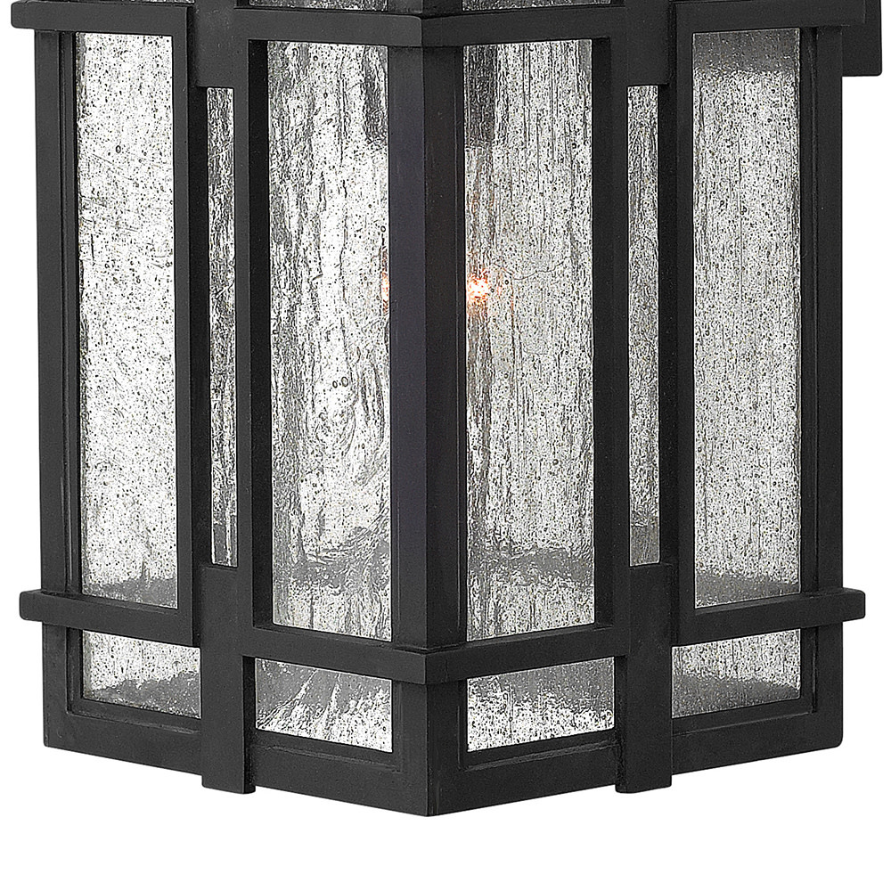 Tucker is study in symmetry with clean geometric lines and proportions reinforced throughout its cast aluminum construction. The sturdy Museum Black or Oil Rubbed Bronze finish and clear seedy glass inspire a rustic lodge aesthetic.