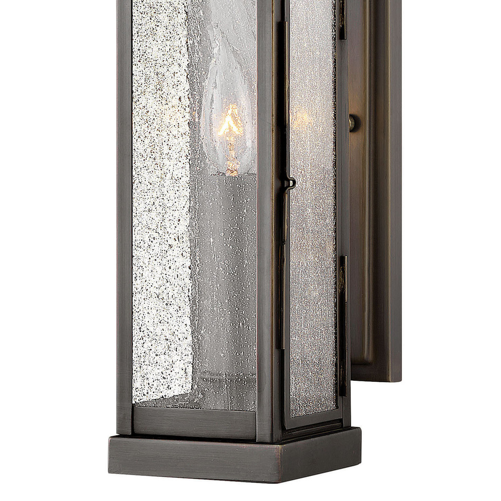 Revere is a traditional coach lantern in solid brass with clear seedy glass panels. The glass, faux candle sleeves and classic candelabra bulbing complete the authentic appearance.