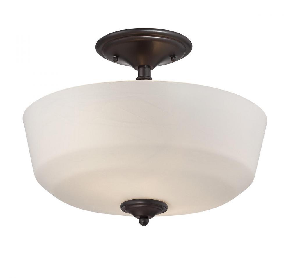 The Savoy House Melrose 2-light ceiling semi-flush mount stylishly updates classic Americana design for today’s homes. Its design features a soft white opal etched glass shade, modern lines and a rich English bronze finish. Semi-flush mounts can be used on the ceiling of pretty much any interior room, including foyers, hallways, stairways, closets, bathrooms, bedrooms, kitchens and more! Bulbs not included. Pair Melrose with hardware finished in bronze or mix it with hardware in other finishes. Melrose is a perfect fit for transitional, classic and traditional style rooms. When you choose a Savoy House lighting fixture, you can be certain you've selected a piece that will withstand the test of time.