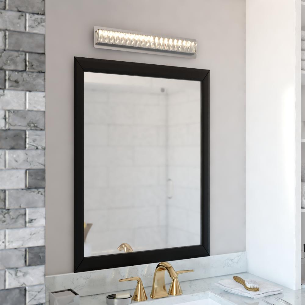 Transform your bathroom into a sanctuary of luxury with the Melrose LED Vanity. Its full backplate and gleaming chrome finish exude a sense of glamour that's both modern and timeless. The integrated LED technology illuminates your space with bright, energy-efficient light while highlighting the vanity's sparkling crystal diffuser, adding an extra layer of elegance to your daily routine.