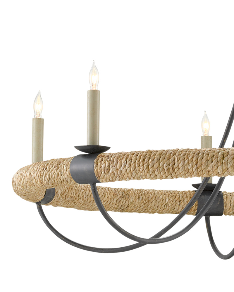 The Menorca Chandelier takes its inspiration from the shape of a football, making this rope chandelier truly unique. Just as it takes a trained professional to throw the ball perfectly, it requires skilled artisans to wrap the abaca rope around the metal laser-cut frame in its intricate open shape so that it appears seamless. The contemporary silver leaf finish adds a luminous touch. Adjustable from 40" to 108" with use of included chain/rod kit/cable. If your space calls for a longer drop, additional chain/rods/cable is available for purchase.