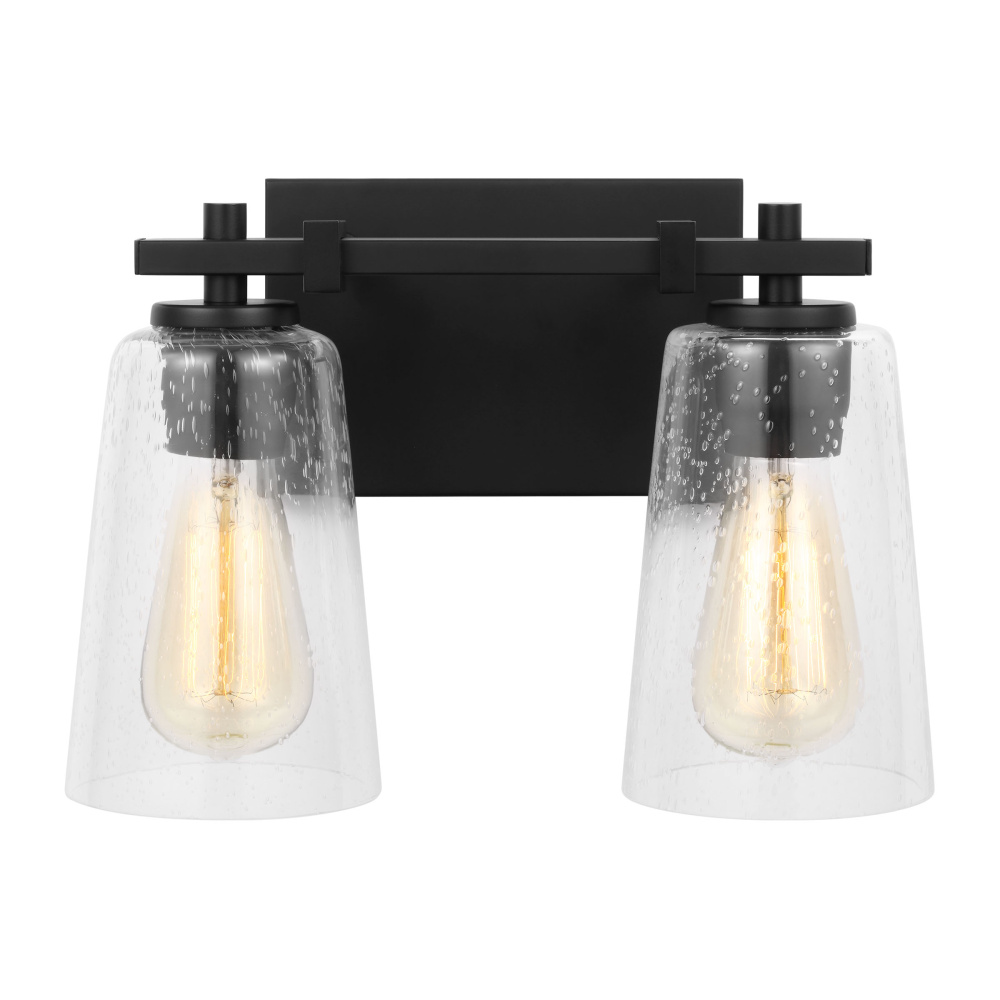 Modern details, like the clean square supports of the cross arm and sleek, rectangular backplate, are defining features of the Mercer. Available in five modern finishes and thickened seeded glass shades, this Mercer vanity lights create a delicately gorgeous effect by illuminating your space with a subtle glow.