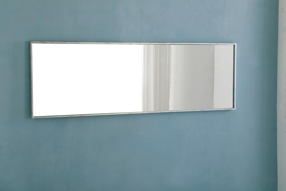 The classic clean and straight lines of this rectangular mirror in silver finish slightly antiqued, provide you with a timeless and elegant look to accent any room or hallway in your home or office, featuring an ultra-thin metal frame in deep profile, refecting a minimalist's design and industrial styling. To ensure your home safety, we uses metal hanger bar that are securely welded to the back of the metal frame. We recommend using suitable heavy duty picture/mirror hooks, selecting the best type of fixing for the particular wall you wish to hang the mirror on, using the appropriate rawl plug if required. Measurement: 18x60, hang vertical or horizontal.