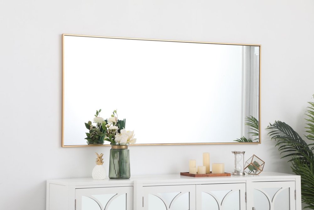 Add elegance and simple form into your home while expanding visual space. This versatile rectangular mirror can be oriented vertically or horizontally, and its slender metal frame comes in a black, brass, or Silver finish. Available in a variety of sizes, this mirror offers you a plethora of design options--whether it overlooks your home in the foyer, bathroom, or bedroom, its stylish modernity will please all.