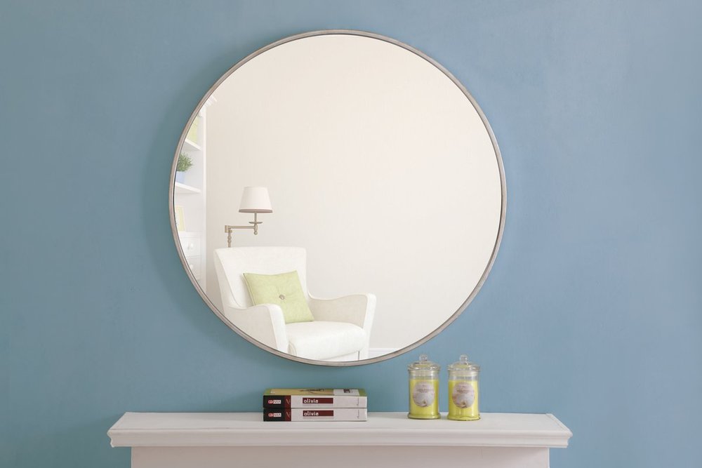 Enhance the appeal of your home or office with this contemporary mirror in Silver finish, slightly antiqued, featuring a thin rounded metal edges in a deep profile, reflecting a minimalist's design and trendy styling. To ensure your home safety, we use a metal hanger bar that are securely welded to the back of the metal frame. We recommend using suitable heavy duty picture/mirror hooks, selecting the best type of fixing for the particular wall you wish to hang the mirror on, using the appropriate rawl plug if required. Measurement: D32.