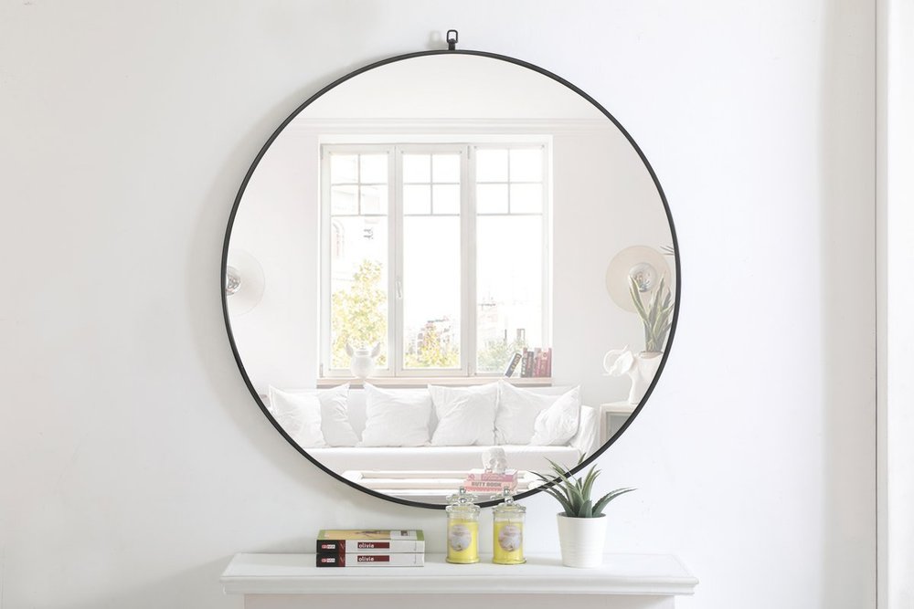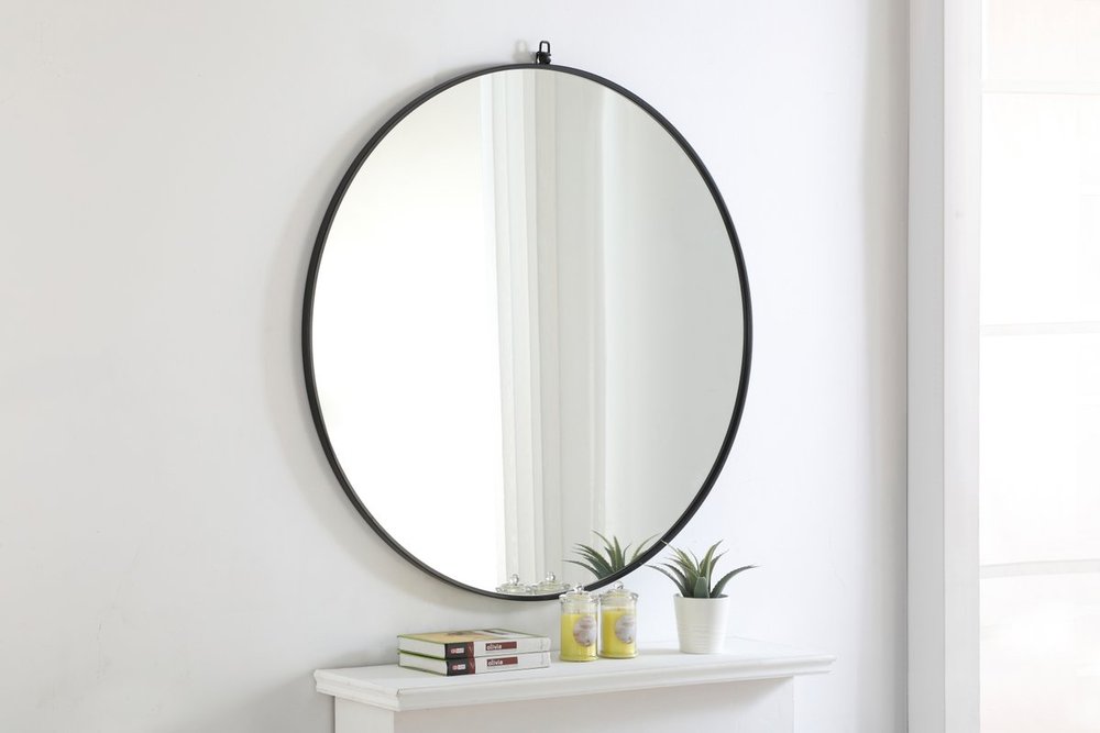 Enhance the appeal of your home or office with this black contemporary mirror featuring a thin rounded metal edges in a deep profile, reflecting a minimalist's design and trendy styling. To ensure your home safety, we use a metal hanger ring that are securely welded to the back of the metal frame , which sit on top of the frame for easy hanging. We recommend using suitable heavy duty picture/mirror hooks, selecting the best type of fixing for the particular wall you wish to hang the mirror on, using the appropriate rawl plug if required.