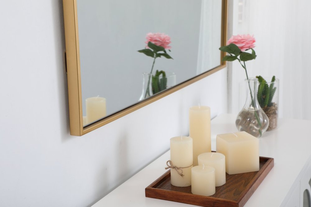 Brass finish on subtle metal frame