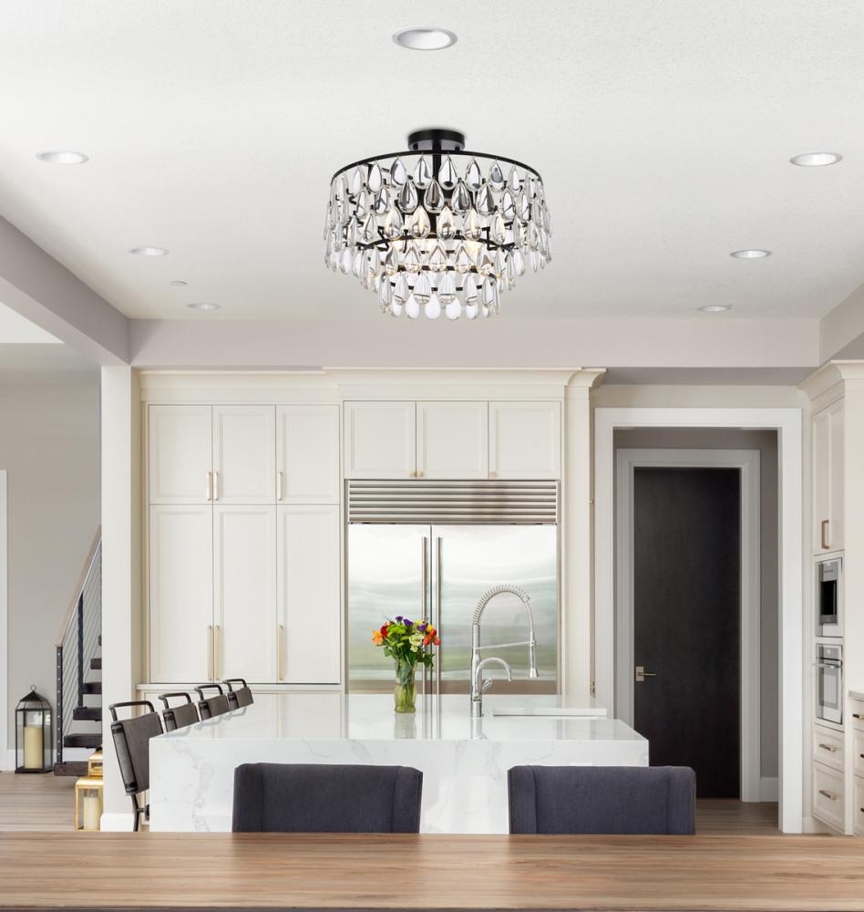 Install this flush mount in any room to give an elegant look. This stunning light features hand painted finish and clear brillant crystals which gives a classy look. Set a cozy atmosphere when you switch on this dazzling fixture and captivate your guests.