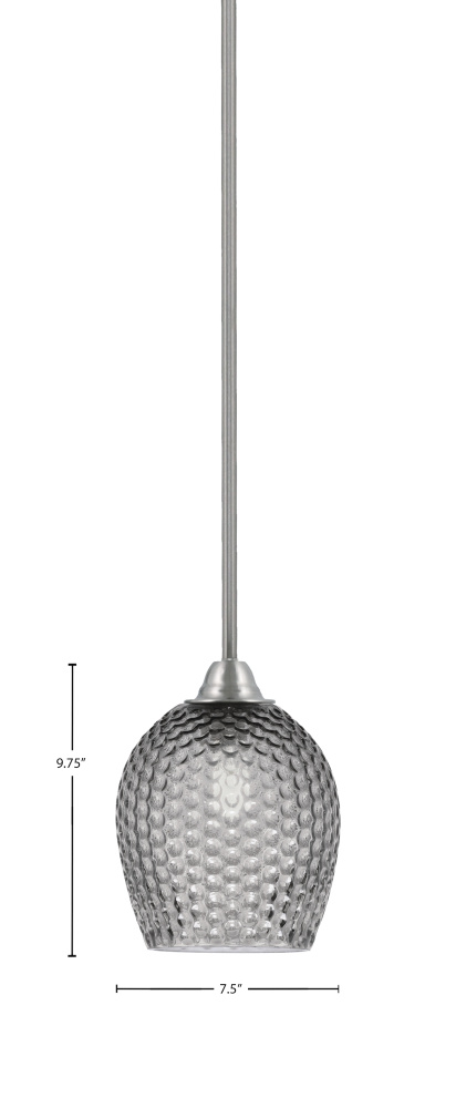 Paramount Stem Hung Mini Pendant Shown In Brushed Nickel Finish With 7.5 Smoke Textured Glass