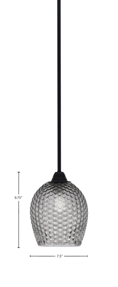 Paramount Stem Hung Mini Pendant Shown In Matte Black Finish With 7.5 Smoke Textured Glass