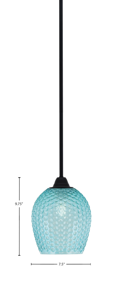 Paramount Stem Hung Mini Pendant Shown In Matte Black Finish With 7.5 Turquoise Textured Glass