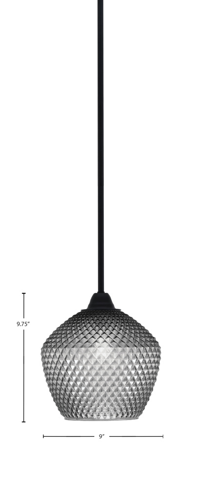 Paramount Stem Hung Mini Pendant Shown In Matte Black Finish With 9 Smoke Textured Glass